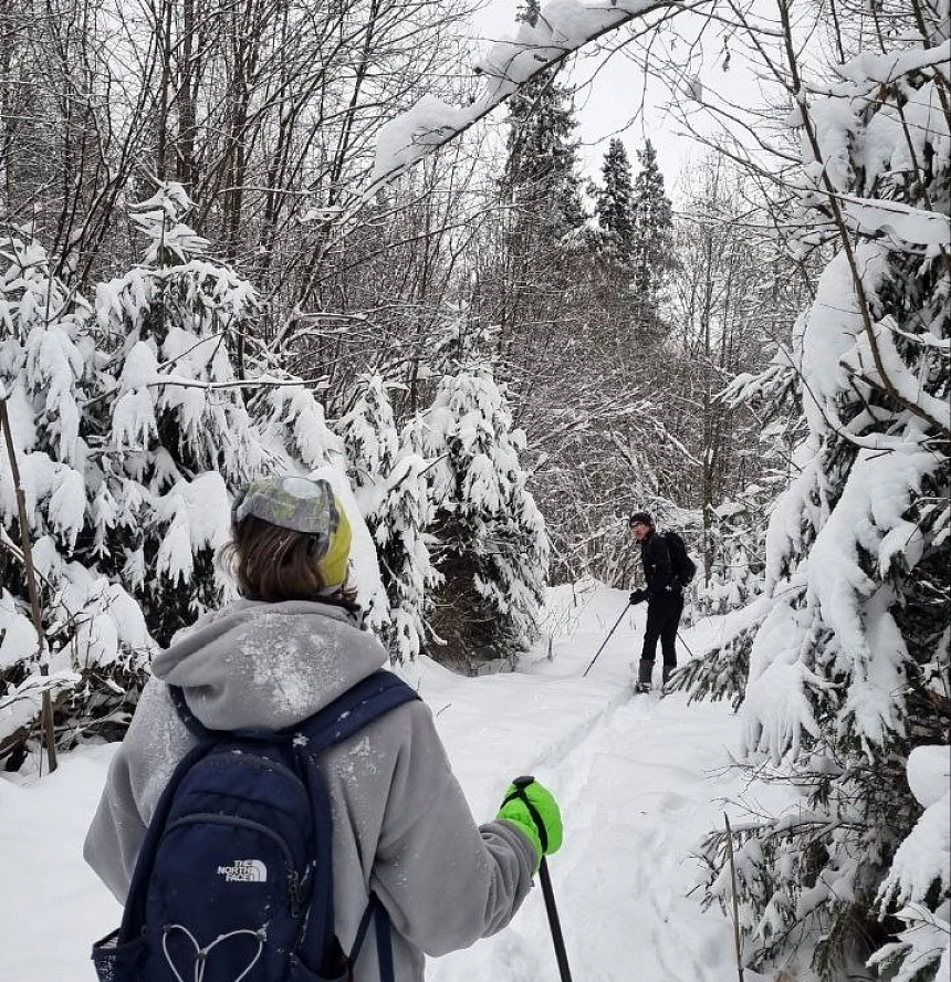 Мы сотрудничаем с лыжной базой Габо. Наши сотрудники, или сотрудники базы снегоходом готовят лыжные маршруты, пригодные для перемещения на лыжах для классического хода. Мы организуем групповые прогулки – для участников мы даем сопровождение гидов и организацию горячего обеда в лесу. Снаряжение можно взять свое или арендовать на лыжной базе Габо.